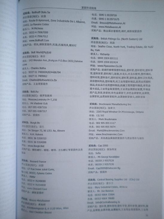 書刊簡(jiǎn)介:《全球采商黃頁(yè)》系列叢書是由全球最活躍的專業(yè)買家及重要國(guó)際性展會(huì)的到會(huì)采購(gòu)商名片信息匯編而成,包含三十多個(gè)行業(yè)分類,匯集了各類產(chǎn)品的買家信息。其中收錄的每家采購(gòu)商信息均是我們通過(guò)與買家面對(duì)面的登記整理收集而成,采購(gòu)意向明確,針對(duì)性強(qiáng)。為了確保信息的準(zhǔn)確性和時(shí)效性,我們定期進(jìn)行跟進(jìn)、回訪、補(bǔ)充及更新工作。每家采購(gòu)商信息包括國(guó)別、公司名稱、聯(lián)系人、地址、電話、傳真、電郵、網(wǎng)址、采購(gòu)產(chǎn)品等詳細(xì)內(nèi)容,每?jī)?cè)《黃頁(yè)》約有兩千家左右的采購(gòu)商信息。在當(dāng)前國(guó)際出口形勢(shì)日趨嚴(yán)峻的環(huán)境下,如何降低成本開拓國(guó)際市場(chǎng),是每個(gè)出口企業(yè)急需尋找的答案,我們相信通過(guò)我們10多年的外貿(mào)信息服務(wù)經(jīng)驗(yàn)和最新的國(guó)際買家資源服務(wù),將會(huì)為您拓展全球市場(chǎng)提供最直接有效的幫助。專業(yè)對(duì)口的買家信息一定會(huì)幫助貴公司打開更廣闊的外貿(mào)市場(chǎng)!