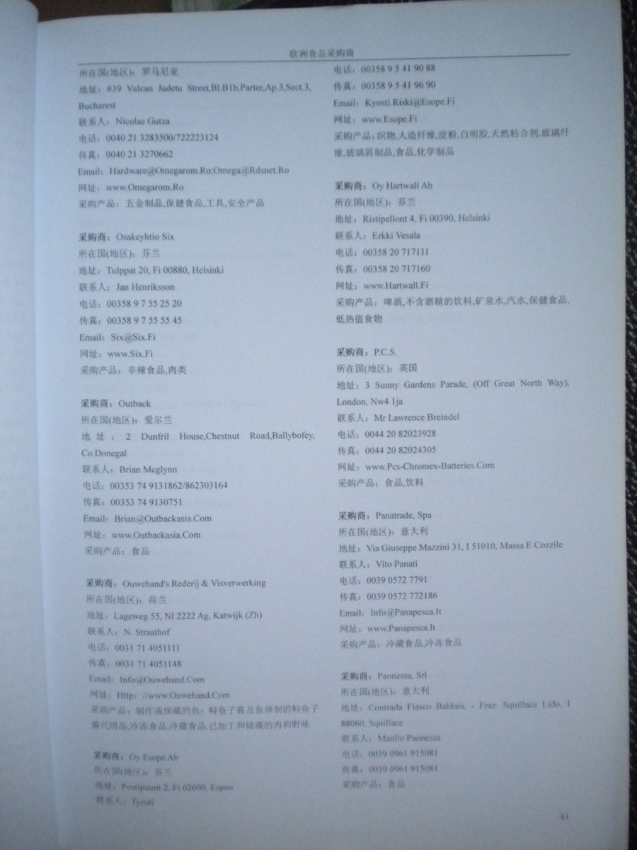 書刊簡(jiǎn)介:《全球采商黃頁(yè)》系列叢書是由全球最活躍的專業(yè)買家及重要國(guó)際性展會(huì)的到會(huì)采購(gòu)商名片信息匯編而成,包含三十多個(gè)行業(yè)分類,匯集了各類產(chǎn)品的買家信息。其中收錄的每家采購(gòu)商信息均是我們通過(guò)與買家面對(duì)面的登記整理收集而成,采購(gòu)意向明確,針對(duì)性強(qiáng)。為了確保信息的準(zhǔn)確性和時(shí)效性,我們定期進(jìn)行跟進(jìn)、回訪、補(bǔ)充及更新工作。每家采購(gòu)商信息包括國(guó)別、公司名稱、聯(lián)系人、地址、電話、傳真、電郵、網(wǎng)址、采購(gòu)產(chǎn)品等詳細(xì)內(nèi)容,每?jī)?cè)《黃頁(yè)》約有兩千家左右的采購(gòu)商信息。在當(dāng)前國(guó)際出口形勢(shì)日趨嚴(yán)峻的環(huán)境下,如何降低成本開拓國(guó)際市場(chǎng),是每個(gè)出口企業(yè)急需尋找的答案,我們相信通過(guò)我們10多年的外貿(mào)信息服務(wù)經(jīng)驗(yàn)和最新的國(guó)際買家資源服務(wù),將會(huì)為您拓展全球市場(chǎng)提供最直接有效的幫助。專業(yè)對(duì)口的買家信息一定會(huì)幫助貴公司打開更廣闊的外貿(mào)市場(chǎng)!