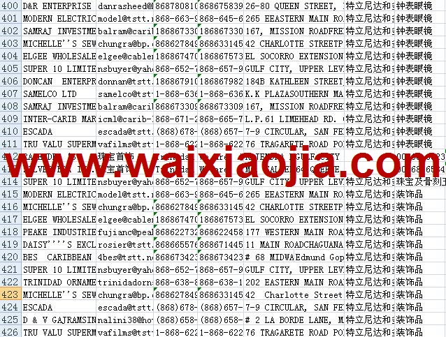 特立尼達(dá)和多巴哥采購(gòu)商名單數(shù)據(jù)為Excel格式,信息可任意修改、復(fù)制、打印、導(dǎo)出及導(dǎo)入到傳真、郵件群發(fā)等軟件中,無(wú)任何限制。