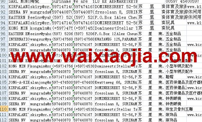 蘇里南采購商名單數(shù)據(jù)為Excel格式,信息可任意修改、復制、打印、導出及導入到傳真、郵件群發(fā)等軟件中,無任何限制。