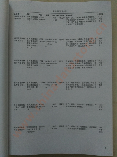 惠州港澳臺投資企業(yè)黃頁 | 包含香港、澳門、臺灣地區(qū)在惠州投資企業(yè) | 80% | RMB:500元 |