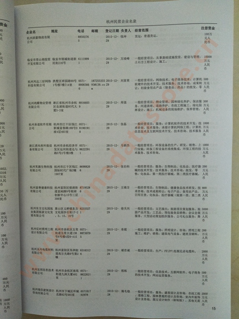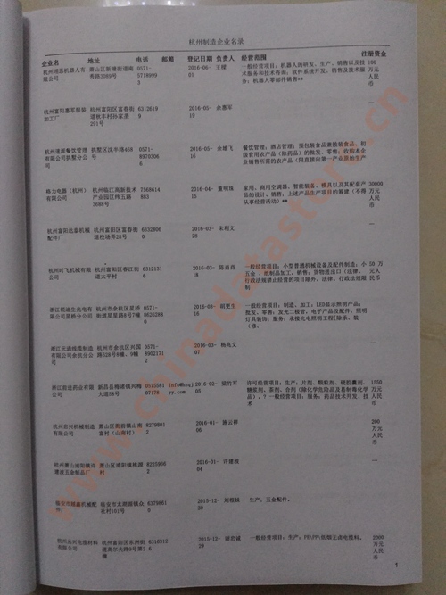 2021版最新杭州企業(yè)黃頁包括《杭州制造企業(yè)黃頁》、《杭州貿(mào)易企業(yè)黃頁》、《杭州民營(yíng)企業(yè)黃頁》、《杭州外資企業(yè)黃頁》、《杭州外貿(mào)企業(yè)黃頁》共五冊(cè),現(xiàn)優(yōu)惠價(jià):280元/冊(cè)。每?jī)?cè)內(nèi)容包括:?jiǎn)挝幻Q、地址、郵編、電話、傳真、郵箱、經(jīng)營(yíng)范圍等;杭州企業(yè)黃頁涵蓋了近幾年來最新成立的、有一定規(guī)模的企業(yè),具有非常高的營(yíng)銷價(jià)值。有了這套黃頁開展業(yè)務(wù)也有了針對(duì)性,也省去了盲目去尋找客戶名單而浪費(fèi)的時(shí)間了,工作效率也會(huì)有很大的提高。歡迎需要杭州企業(yè)黃頁的朋友及時(shí)聯(lián)系我們!