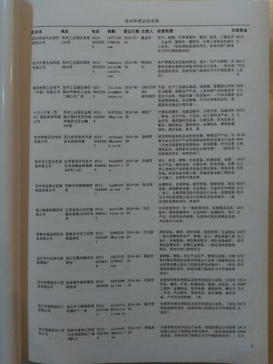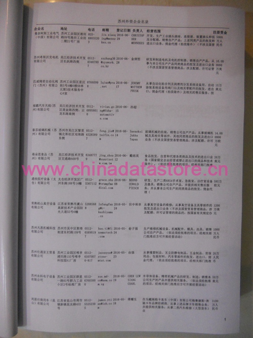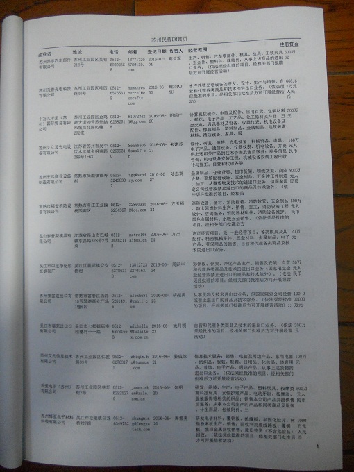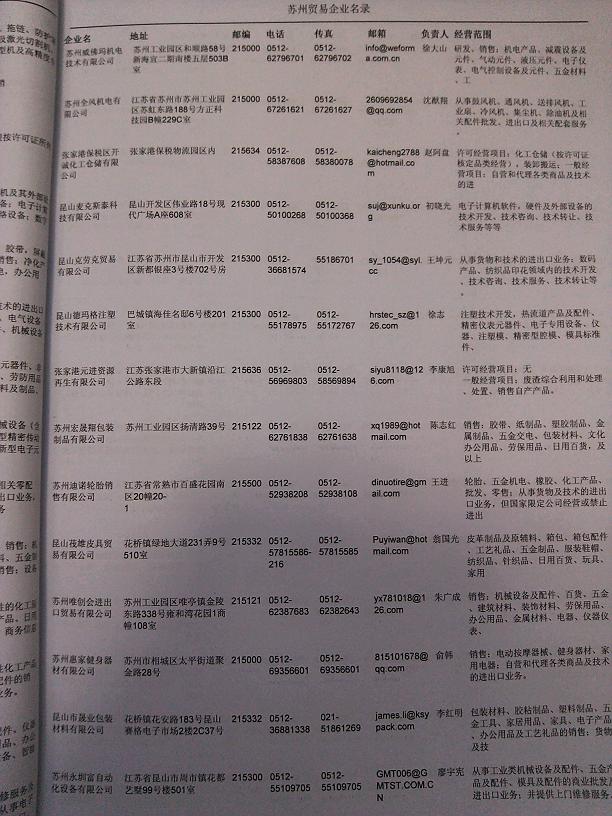 2021版最新蘇州企業(yè)黃頁(yè)包括《蘇州制造企業(yè)黃頁(yè)》、《蘇州貿(mào)易企業(yè)黃頁(yè)》、《蘇州民營(yíng)企業(yè)黃頁(yè)》、《蘇州外資企業(yè)黃頁(yè)》、《蘇州外貿(mào)企業(yè)黃頁(yè)》共五冊(cè),現(xiàn)優(yōu)惠價(jià):280元/冊(cè)。每?jī)?cè)內(nèi)容包括:?jiǎn)挝幻Q、地址、郵編、電話、傳真、郵箱、經(jīng)營(yíng)范圍等;蘇州企業(yè)黃頁(yè)涵蓋了近幾年來(lái)最新成立的、有一定規(guī)模的企業(yè),具有非常高的營(yíng)銷價(jià)值。有了這套黃頁(yè)開展業(yè)務(wù)也有了針對(duì)性,也省去了盲目去尋找客戶名單而浪費(fèi)的時(shí)間了,工作效率也會(huì)有很大的提高。歡迎需要蘇州企業(yè)黃頁(yè)的朋友及時(shí)聯(lián)系我們!