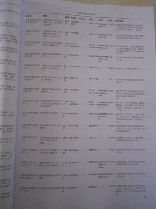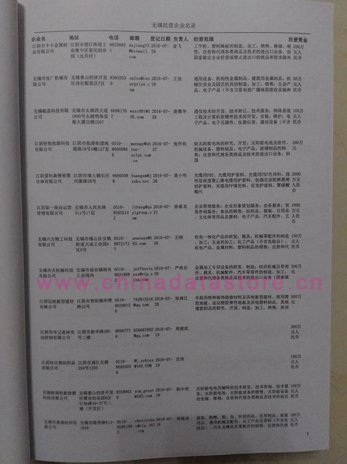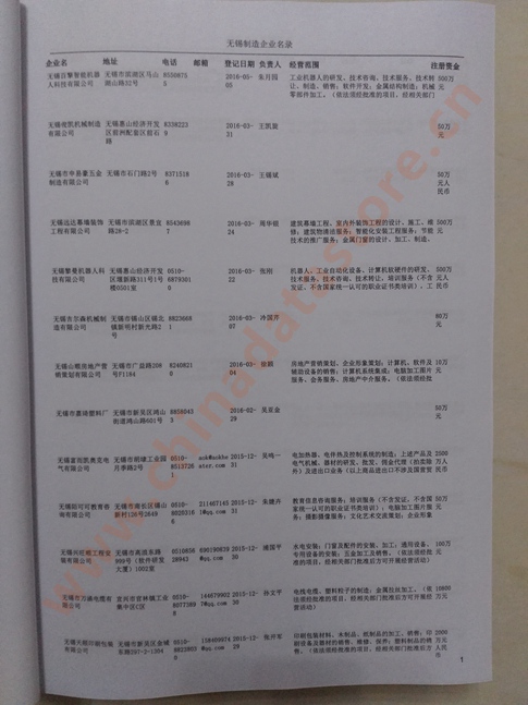 2021版最新無(wú)錫企業(yè)黃頁(yè)包括《無(wú)錫制造企業(yè)黃頁(yè)》、《無(wú)錫貿(mào)易企業(yè)黃頁(yè)》、《無(wú)錫民營(yíng)企業(yè)黃頁(yè)》、《無(wú)錫外資企業(yè)黃頁(yè)》、《無(wú)錫外貿(mào)企業(yè)黃頁(yè)》共五冊(cè),現(xiàn)優(yōu)惠價(jià):280元/冊(cè)。每?jī)?cè)內(nèi)容包括:?jiǎn)挝幻Q、地址、郵編、電話、傳真、郵箱、經(jīng)營(yíng)范圍等;無(wú)錫企業(yè)黃頁(yè)涵蓋了近幾年來(lái)最新成立的、有一定規(guī)模的企業(yè),具有非常高的營(yíng)銷價(jià)值。有了這套黃頁(yè)開(kāi)展業(yè)務(wù)也有了針對(duì)性,也省去了盲目去尋找客戶名單而浪費(fèi)的時(shí)間了,工作效率也會(huì)有很大的提高。歡迎需要無(wú)錫企業(yè)黃頁(yè)的朋友及時(shí)聯(lián)系我們!