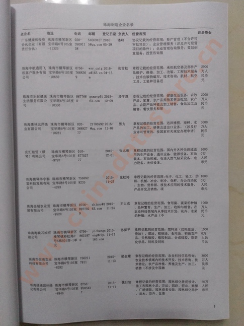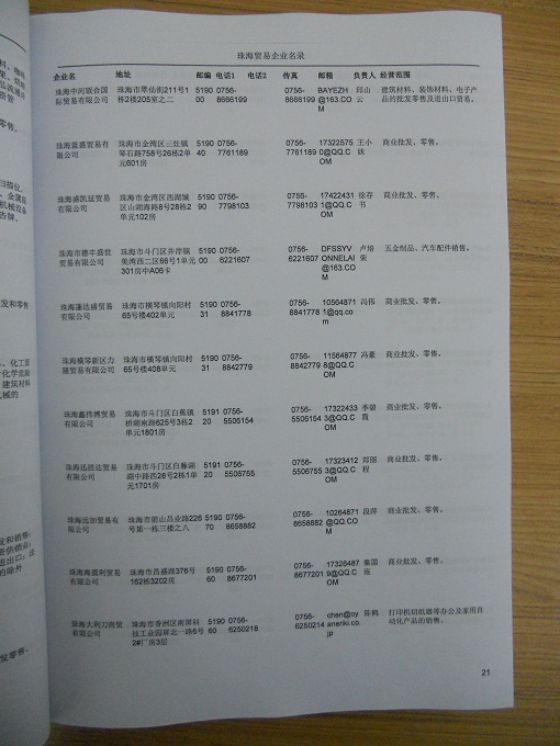 2021版最新珠海企業(yè)黃頁包括《珠海制造企業(yè)黃頁》、《珠海貿(mào)易企業(yè)黃頁》、《珠海民營企業(yè)黃頁》、《珠海外資企業(yè)黃頁》、《珠海外貿(mào)企業(yè)黃頁》共五冊,現(xiàn)優(yōu)惠價:280元/冊。每冊內(nèi)容包括:單位名稱、地址、郵編、電話、傳真、郵箱、經(jīng)營范圍等;珠海企業(yè)黃頁涵蓋了近幾年來最新成立的、有一定規(guī)模的企業(yè),具有非常高的營銷價值。有了這套黃頁開展業(yè)務也有了針對性,也省去了盲目去尋找客戶名單而浪費的時間了,工作效率也會有很大的提高。歡迎需要珠海企業(yè)黃頁的朋友及時聯(lián)系我們!