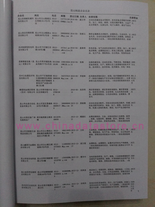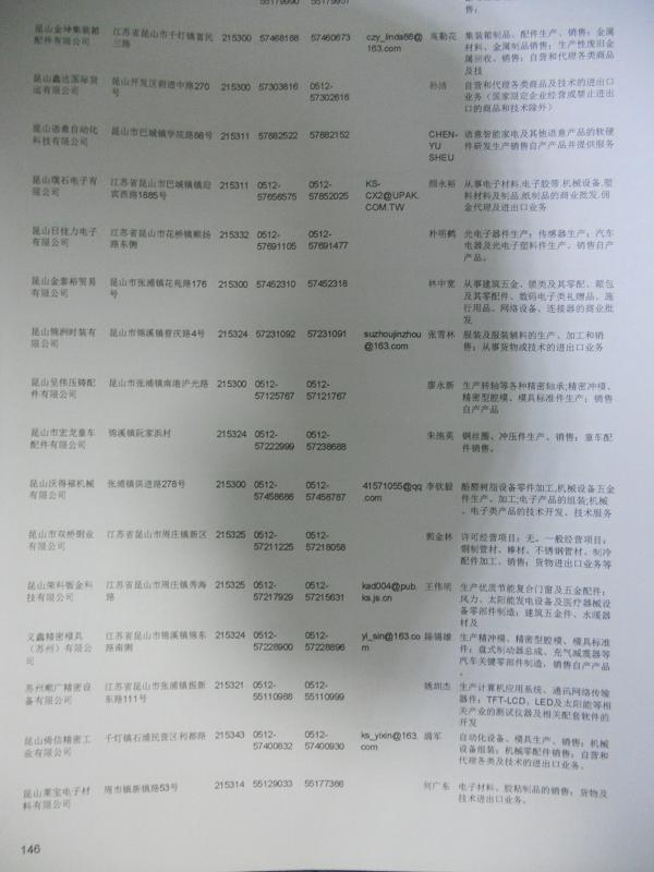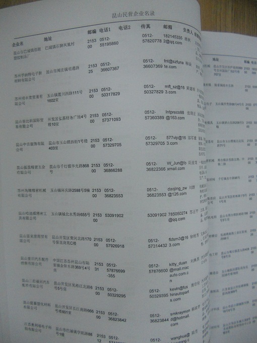 2021版最新昆山企業(yè)黃頁包括《昆山制造企業(yè)黃頁》、《昆山貿(mào)易企業(yè)黃頁》、《昆山民營企業(yè)黃頁》、《昆山外資企業(yè)黃頁》、《昆山外貿(mào)企業(yè)黃頁》共五冊,現(xiàn)優(yōu)惠價(jià):280元/冊。每冊內(nèi)容包括:單位名稱、地址、郵編、電話、傳真、郵箱、經(jīng)營范圍等;昆山企業(yè)黃頁涵蓋了近幾年來最新成立的、有一定規(guī)模的企業(yè),具有非常高的營銷價(jià)值。有了這套黃頁開展業(yè)務(wù)也有了針對性,也省去了盲目去尋找客戶名單而浪費(fèi)的時(shí)間了,工作效率也會有很大的提高。歡迎需要昆山企業(yè)黃頁的朋友及時(shí)聯(lián)系我們!