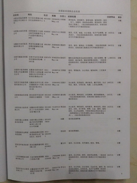 2024年新版中國(guó)家具采購(gòu)企業(yè)黃頁(yè),收錄了全國(guó)各地經(jīng)營(yíng)范圍涉及家具產(chǎn)品的貿(mào)易企業(yè),這些都是頗具實(shí)力的家具產(chǎn)品的中國(guó)采購(gòu)商。黃頁(yè)內(nèi)容包含:企業(yè)名稱、地址、電話、傳真、郵箱、經(jīng)營(yíng)范圍、省份、注冊(cè)資金等信息。該套黃頁(yè)包含一個(gè)黃頁(yè)光碟加一冊(cè)紙質(zhì)書(shū)刊,全國(guó)價(jià)格:1500元元,省/直轄市價(jià)格:400元元,城市價(jià)格:200元,共收錄了全國(guó)各地大概28419(統(tǒng)計(jì)日期:2018.1)家具產(chǎn)品采購(gòu)企業(yè)。黃頁(yè)光碟中是EXCEL格式,信息可任意修改、復(fù)制、打印、導(dǎo)出及導(dǎo)入到傳真、郵件群發(fā)等軟件中,無(wú)任何限制。