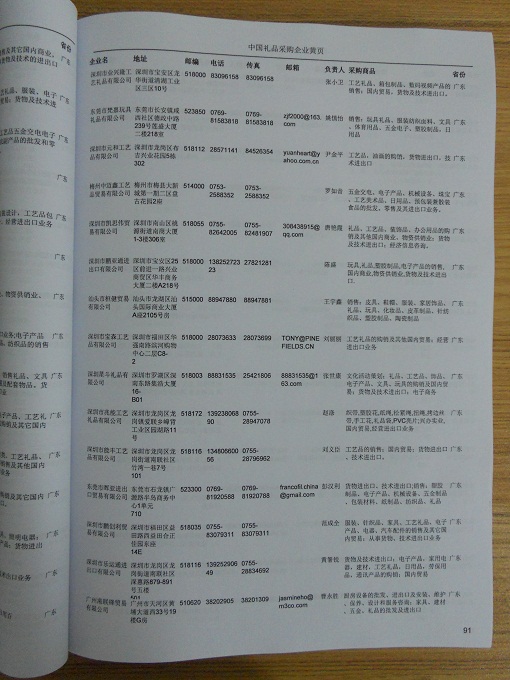 2024年新版中國(guó)禮品采購(gòu)企業(yè)黃頁(yè),收錄了全國(guó)各地經(jīng)營(yíng)范圍涉及禮品產(chǎn)品的貿(mào)易企業(yè),這些都是頗具實(shí)力的禮品產(chǎn)品的中國(guó)采購(gòu)商。黃頁(yè)內(nèi)容包含:企業(yè)名稱、地址、電話、傳真、郵箱、經(jīng)營(yíng)范圍、省份、注冊(cè)資金等信息。該套黃頁(yè)包含一個(gè)黃頁(yè)光碟加一冊(cè)紙質(zhì)書刊,全國(guó)價(jià)格:1500元,省/直轄市價(jià)格:400元,城市價(jià)格:200元,共收錄了全國(guó)各地大概7116(統(tǒng)計(jì)日期:2018.1)家禮品產(chǎn)品采購(gòu)企業(yè)。黃頁(yè)光碟中是EXCEL格式,信息可任意修改、復(fù)制、打印、導(dǎo)出及導(dǎo)入到傳真、郵件群發(fā)等軟件中,無(wú)任何限制。