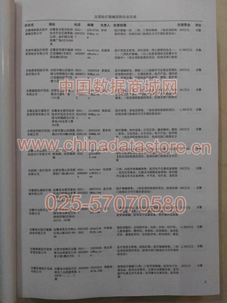2024年新版中國醫(yī)療器械采購企業(yè)黃頁,收錄了全國各地經(jīng)營范圍涉及醫(yī)療器械產(chǎn)品的貿(mào)易企業(yè),這些都是頗具實力的醫(yī)療器械產(chǎn)品的中國采購商。黃頁內(nèi)容包含:企業(yè)名稱、地址、電話、傳真、郵箱、經(jīng)營范圍、省份、注冊資金等信息。該套黃頁包含一個黃頁光碟加一冊紙質(zhì)書刊,全國價格:1200元,省/直轄市價格是:400元,城市價格是:200元,共收錄了全國各地大概36680(更新日期:2017.1)家醫(yī)療器械產(chǎn)品采購企業(yè)。黃頁光碟中是EXCEL格式,信息可任意修改、復(fù)制、打印、導(dǎo)出及導(dǎo)入到傳真、郵件群發(fā)等軟件中,無任何限制。