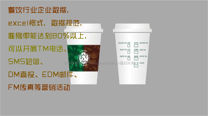 某省或直轄市 | 如上海、浙江餐飲企業(yè)名單 | 80% - 90% | 600元 | 附贈一冊餐飲紙質(zhì)印刷品 |