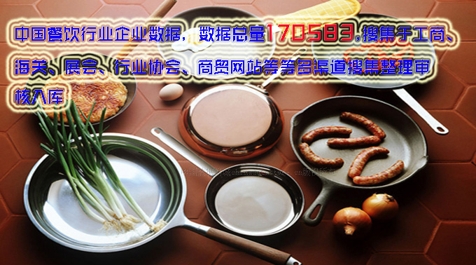 最新餐飲企業(yè)黃頁數(shù)據(jù)更新日期2024年12月最新,全國餐飲企業(yè)名單共170583條,都是具有一定規(guī)模的餐飲行業(yè)的注冊實體企業(yè),數(shù)據(jù)準(zhǔn)確率高,是您開展各項營銷活動的必備資料。企業(yè)名單包括:企業(yè)名稱、地址、電話(以上必有,以下選有)、傳真、郵箱、登記日期、經(jīng)營范圍、注冊資金等信息。餐飲企業(yè)黃頁數(shù)據(jù)為Excel格式,信息可任意修改、復(fù)制、打印、導(dǎo)出及導(dǎo)入到傳真、郵件群發(fā)等軟件中,無任何限制。