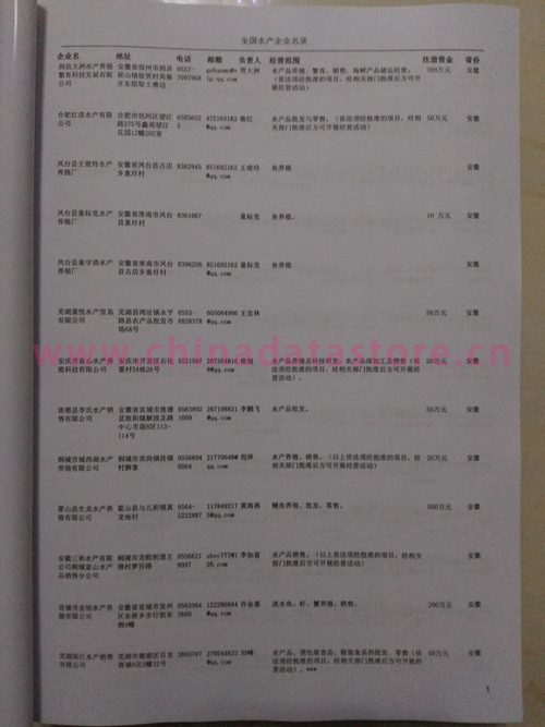 某省或直轄市 | 如上海、浙江水產(chǎn)企業(yè)名單 | 80% - 90% | 600元 | 附贈一冊水產(chǎn)紙質(zhì)印刷品 |