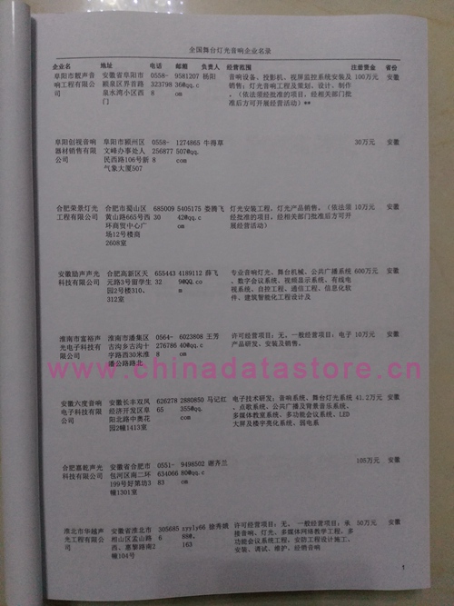 某省或直轄市 | 如上海、浙江舞臺(tái)燈光音響企業(yè)名單 | 80% - 90% | 600元 | 附贈(zèng)一冊(cè)舞臺(tái)燈光音響紙質(zhì)印刷品 |