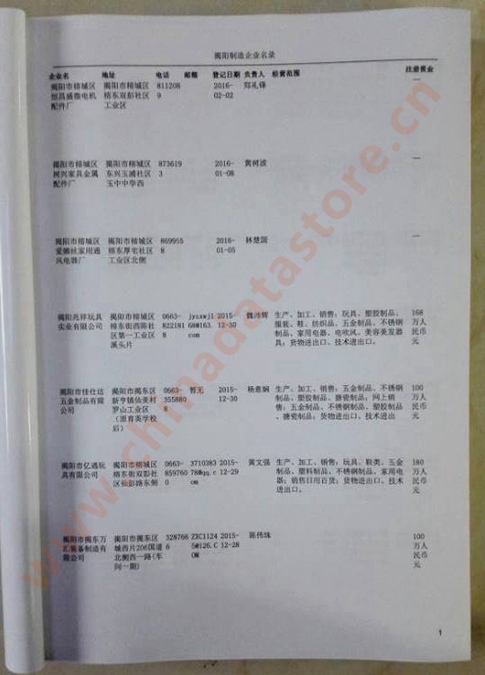 2021版最新揭陽企業(yè)黃頁包括《揭陽制造企業(yè)黃頁》、《揭陽民營企業(yè)黃頁》,現(xiàn)優(yōu)惠價:280元/冊。每冊內(nèi)容包括:單位名稱、地址、郵編、電話、傳真、郵箱、經(jīng)營范圍等;揭陽企業(yè)黃頁涵蓋了近幾年來最新成立的、有一定規(guī)模的企業(yè),具有非常高的營銷價值。有了這套黃頁開展業(yè)務(wù)也有了針對性,也省去了盲目去尋找客戶名單而浪費(fèi)的時間了,工作效率也會有很大的提高。歡迎需要揭陽企業(yè)黃頁的朋友及時聯(lián)系我們!