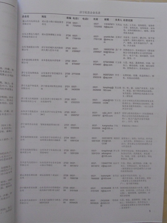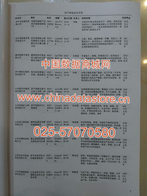 2021版最新濟(jì)寧企業(yè)黃頁包括《濟(jì)寧制造企業(yè)黃頁》、《濟(jì)寧民營企業(yè)黃頁》,現(xiàn)優(yōu)惠價:280元/冊。每冊內(nèi)容包括:單位名稱、地址、郵編、電話、傳真、郵箱、經(jīng)營范圍等;濟(jì)寧企業(yè)黃頁涵蓋了近幾年來最新成立的、有一定規(guī)模的企業(yè),具有非常高的營銷價值。有了這套黃頁開展業(yè)務(wù)也有了針對性,也省去了盲目去尋找客戶名單而浪費的時間了,工作效率也會有很大的提高。歡迎需要濟(jì)寧企業(yè)黃頁的朋友及時聯(lián)系我們!