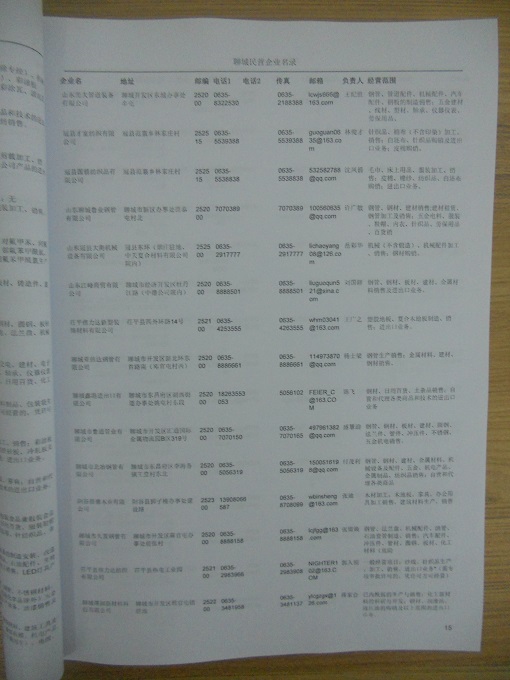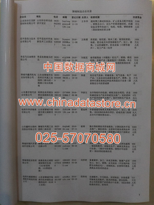 2021版最新聊城企業(yè)黃頁包括《聊城制造企業(yè)黃頁》、《聊城民營企業(yè)黃頁》,現(xiàn)優(yōu)惠價(jià):280元/冊。每冊內(nèi)容包括:單位名稱、地址、郵編、電話、傳真、郵箱、經(jīng)營范圍等;聊城企業(yè)黃頁涵蓋了近幾年來最新成立的、有一定規(guī)模的企業(yè),具有非常高的營銷價(jià)值。有了這套黃頁開展業(yè)務(wù)也有了針對性,也省去了盲目去尋找客戶名單而浪費(fèi)的時(shí)間了,工作效率也會有很大的提高。歡迎需要聊城企業(yè)黃頁的朋友及時(shí)聯(lián)系我們!
