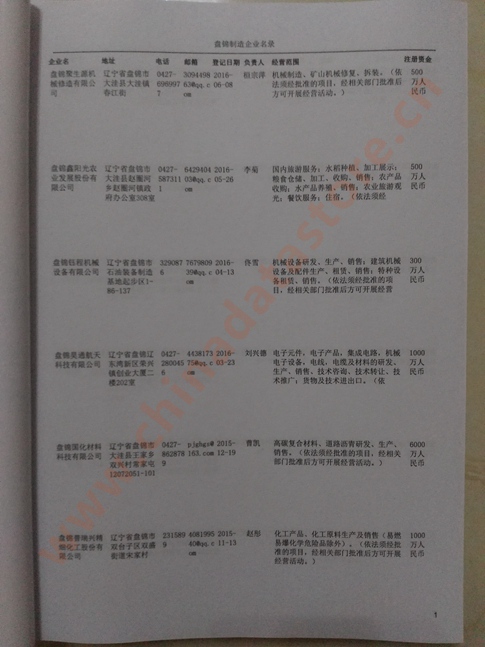 2021版最新盤錦企業(yè)黃頁(yè)包括《盤錦制造企業(yè)黃頁(yè)》、《盤錦民營(yíng)企業(yè)黃頁(yè)》,現(xiàn)優(yōu)惠價(jià):280元/冊(cè)。每?jī)?cè)內(nèi)容包括:?jiǎn)挝幻Q、地址、郵編、電話、傳真、郵箱、經(jīng)營(yíng)范圍等;盤錦企業(yè)黃頁(yè)涵蓋了近幾年來(lái)最新成立的、有一定規(guī)模的企業(yè),具有非常高的營(yíng)銷價(jià)值。有了這套黃頁(yè)開展業(yè)務(wù)也有了針對(duì)性,也省去了盲目去尋找客戶名單而浪費(fèi)的時(shí)間了,工作效率也會(huì)有很大的提高。歡迎需要盤錦企業(yè)黃頁(yè)的朋友及時(shí)聯(lián)系我們!
