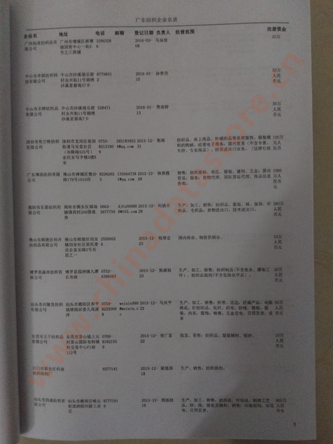 廣東紡織企業(yè)黃頁 | 所有廣東紡織企業(yè)黃頁 | 80% - 90% | 600元 | 附贈一冊廣東紡織紙質(zhì)印刷品 |