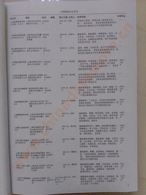 上海服裝企業(yè)黃頁 | 所有上海服裝企業(yè)黃頁 | 80% - 90% | 600元 | 附贈一冊上海服裝紙質(zhì)印刷品 |