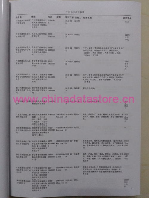廣東化工企業(yè)黃頁 | 所有廣東化工企業(yè)黃頁 | 80% - 90% | 600元 | 附贈一冊廣東化工紙質(zhì)印刷品 |