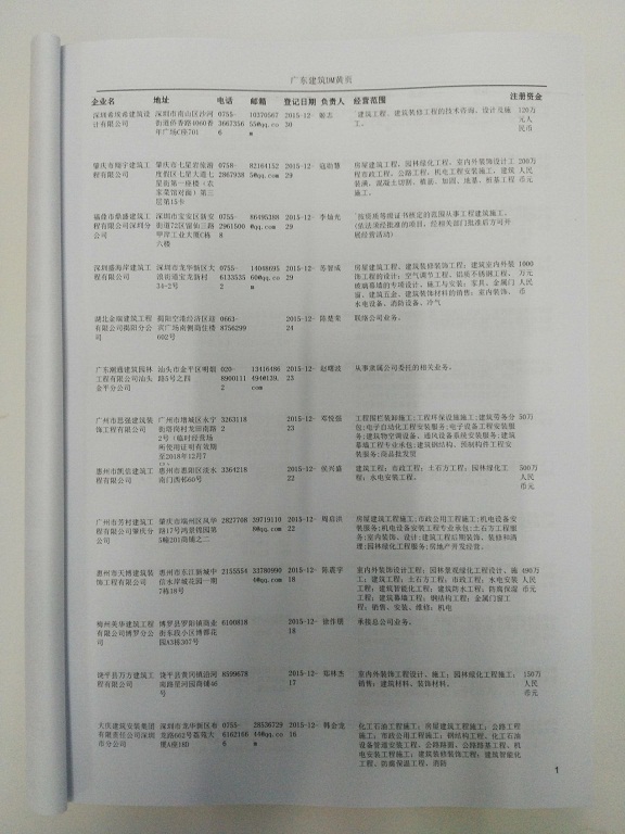 廣東建筑工程企業(yè)黃頁 | 所有廣東建筑工程企業(yè)黃頁 | 80% - 90% | 600元 | 附贈一冊廣東建筑工程紙質(zhì)印刷品 |