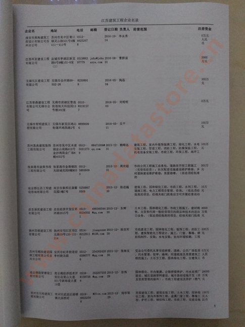 江蘇建筑工程企業(yè)黃頁 | 所有江蘇建筑工程企業(yè)黃頁 | 80% - 90% | 600元 | 附贈一冊江蘇建筑工程紙質(zhì)印刷品 |