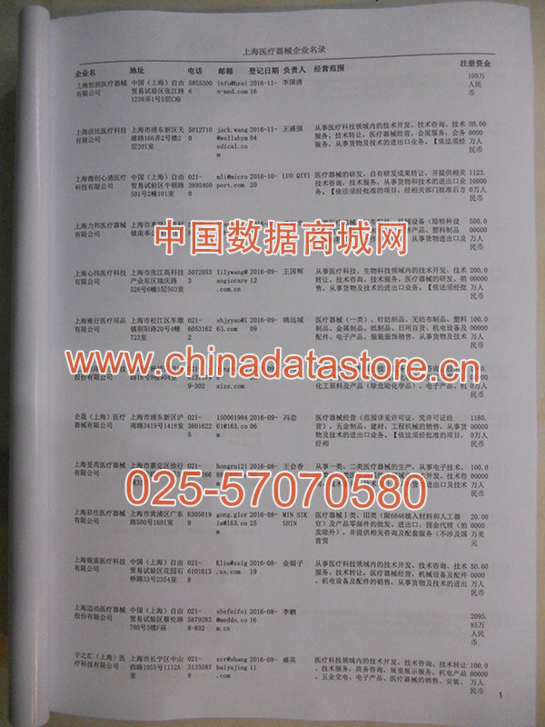 最新上海醫(yī)療器械生產與貿易企業(yè)黃頁數(shù)據更新日期2024年12月最新,全國上海醫(yī)療器械企業(yè)黃頁,都是具有一定規(guī)模的上海醫(yī)療器械行業(yè)的注冊實體企業(yè),數(shù)據準確率高,是您開展各項營銷活動的必備資料。企業(yè)名單包括:企業(yè)名稱、地址、電話(以上必有,以下選有)、傳真、郵箱、登記日期、經營范圍、注冊資金等信息。上海醫(yī)療器械企業(yè)黃頁數(shù)據為Excel格式,信息可任意修改、復制、打印、導出及導入到傳真、郵件群發(fā)等軟件中,無任何限制。