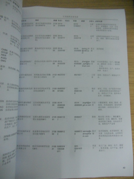 江蘇醫(yī)藥企業(yè)黃頁 | 所有江蘇醫(yī)藥企業(yè)黃頁 | 80% - 90% | 600元 | 附贈一冊江蘇醫(yī)藥紙質(zhì)印刷品 |