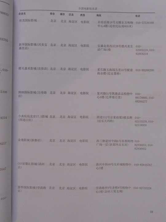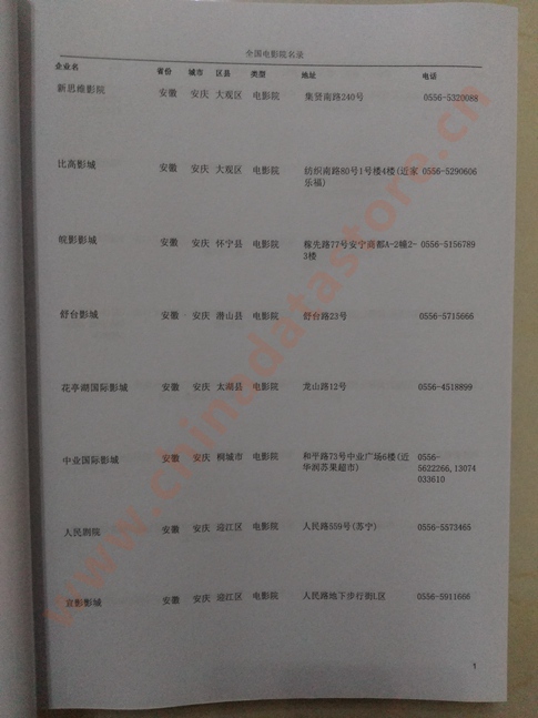 全國電影院黃頁 | 全國電影院黃頁 | 80% - 90% | 1000元 | 附贈一冊電影院紙質印刷品 |