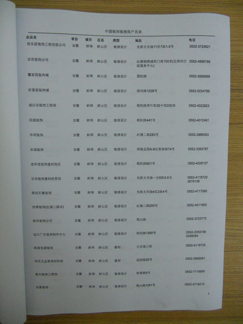 某省或直轄市 | 如上海、浙江裝修商戶名單 | 80% - 90% | 600元 | 附贈一冊裝修商戶紙質(zhì)印刷品 |