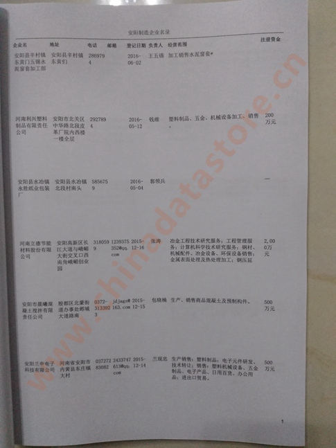 2021版最新安陽(yáng)企業(yè)黃頁(yè)包括《安陽(yáng)制造企業(yè)黃頁(yè)》、《安陽(yáng)民營(yíng)企業(yè)黃頁(yè)》,現(xiàn)優(yōu)惠價(jià):280元/冊(cè)。每?jī)?cè)內(nèi)容包括:?jiǎn)挝幻Q、地址、郵編、電話、傳真、郵箱、經(jīng)營(yíng)范圍等;安陽(yáng)企業(yè)黃頁(yè)涵蓋了近幾年來(lái)最新成立的、有一定規(guī)模的企業(yè),具有非常高的營(yíng)銷價(jià)值。有了這套黃頁(yè)開展業(yè)務(wù)也有了針對(duì)性,也省去了盲目去尋找客戶名單而浪費(fèi)的時(shí)間了,工作效率也會(huì)有很大的提高。歡迎需要安陽(yáng)企業(yè)黃頁(yè)的朋友及時(shí)聯(lián)系我們!