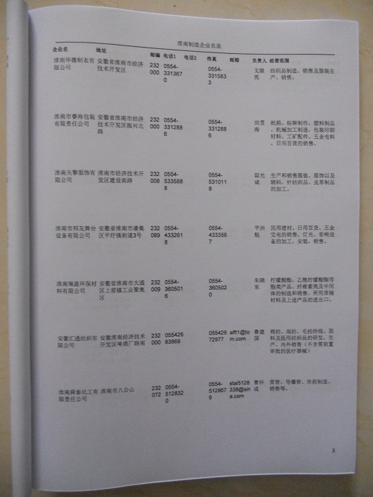2021版最新淮南企業(yè)黃頁包括《淮南制造企業(yè)黃頁》、《淮南民營企業(yè)黃頁》,現(xiàn)優(yōu)惠價:280元/冊。每冊內(nèi)容包括:單位名稱、地址、郵編、電話、傳真、郵箱、經(jīng)營范圍等;淮南企業(yè)黃頁涵蓋了近幾年來最新成立的、有一定規(guī)模的企業(yè),具有非常高的營銷價值。有了這套黃頁開展業(yè)務也有了針對性,也省去了盲目去尋找客戶名單而浪費的時間了,工作效率也會有很大的提高。歡迎需要淮南企業(yè)黃頁的朋友及時聯(lián)系我們!