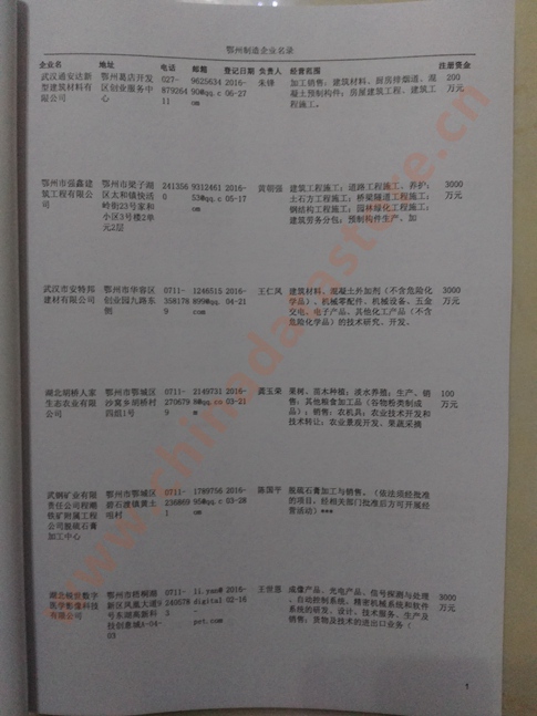2021版最新鄂州企業(yè)黃頁(yè)包括《鄂州制造企業(yè)黃頁(yè)》、《鄂州民營(yíng)企業(yè)黃頁(yè)》,現(xiàn)優(yōu)惠價(jià):280元/冊(cè)。每?jī)?cè)內(nèi)容包括:?jiǎn)挝幻Q(chēng)、地址、郵編、電話、傳真、郵箱、經(jīng)營(yíng)范圍等;鄂州企業(yè)黃頁(yè)涵蓋了近幾年來(lái)最新成立的、有一定規(guī)模的企業(yè),具有非常高的營(yíng)銷(xiāo)價(jià)值。有了這套黃頁(yè)開(kāi)展業(yè)務(wù)也有了針對(duì)性,也省去了盲目去尋找客戶名單而浪費(fèi)的時(shí)間了,工作效率也會(huì)有很大的提高。歡迎需要鄂州企業(yè)黃頁(yè)的朋友及時(shí)聯(lián)系我們!