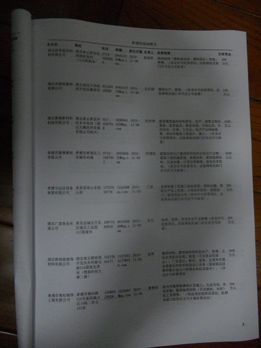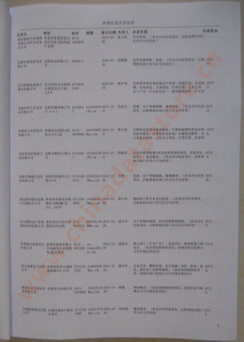 2021版最新孝感企業(yè)黃頁(yè)包括《孝感制造企業(yè)黃頁(yè)》、《孝感民營(yíng)企業(yè)黃頁(yè)》,現(xiàn)優(yōu)惠價(jià):280元/冊(cè)。每?jī)?cè)內(nèi)容包括:?jiǎn)挝幻Q(chēng)、地址、郵編、電話、傳真、郵箱、經(jīng)營(yíng)范圍等;孝感企業(yè)黃頁(yè)涵蓋了近幾年來(lái)最新成立的、有一定規(guī)模的企業(yè),具有非常高的營(yíng)銷(xiāo)價(jià)值。有了這套黃頁(yè)開(kāi)展業(yè)務(wù)也有了針對(duì)性,也省去了盲目去尋找客戶名單而浪費(fèi)的時(shí)間了,工作效率也會(huì)有很大的提高。歡迎需要孝感企業(yè)黃頁(yè)的朋友及時(shí)聯(lián)系我們!