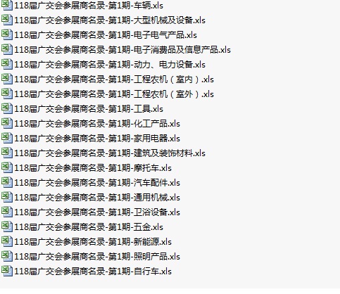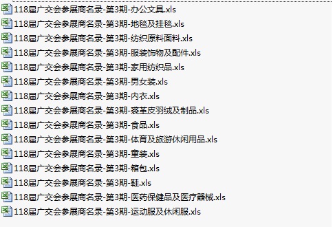 118屆廣交會(huì)參展商企業(yè)黃頁(yè)共30128條記錄(部分企業(yè)參加不止一期,實(shí)際數(shù)量2萬(wàn)家左右)。售價(jià)200元