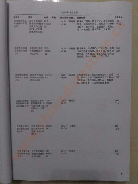 北京印刷企業(yè)黃頁收錄了最新的北京印刷企業(yè)名單,具有極高的營銷價值,實實在在提高銷售業(yè)績