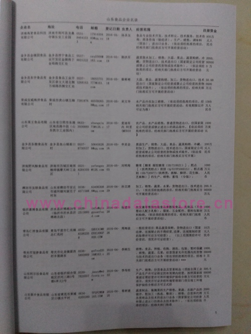 最新山東食品生產(chǎn)與貿(mào)易企業(yè)黃頁數(shù)據(jù)更新日期2024年12月最新,山東食品企業(yè)黃頁,都是具有一定規(guī)模的山東食品行業(yè)的注冊實(shí)體企業(yè),數(shù)據(jù)準(zhǔn)確率高,是您開展各項(xiàng)營銷活動(dòng)的必備資料。企業(yè)名單包括:企業(yè)名稱、地址、電話(以上必有,以下選有)、傳真、郵箱、登記日期、經(jīng)營范圍、注冊資金等信息。山東食品企業(yè)黃頁數(shù)據(jù)為Excel格式,信息可任意修改、復(fù)制、打印、導(dǎo)出及導(dǎo)入到傳真、郵件群發(fā)等軟件中,無任何限制。