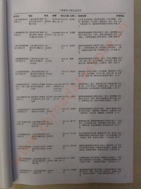 最新上海裝飾裝修生產(chǎn)與貿(mào)易企業(yè)黃頁數(shù)據(jù)更新日期2024年12月最新,上海裝飾裝修企業(yè)黃頁,都是具有一定規(guī)模的上海裝飾裝修行業(yè)的注冊實體企業(yè),數(shù)據(jù)準(zhǔn)確率高,是您開展各項營銷活動的必備資料。企業(yè)名單包括:企業(yè)名稱、地址、電話(以上必有,以下選有)、傳真、郵箱、登記日期、經(jīng)營范圍、注冊資金等信息。上海裝飾裝修企業(yè)黃頁數(shù)據(jù)為Excel格式,信息可任意修改、復(fù)制、打印、導(dǎo)出及導(dǎo)入到傳真、郵件群發(fā)等軟件中,無任何限制。