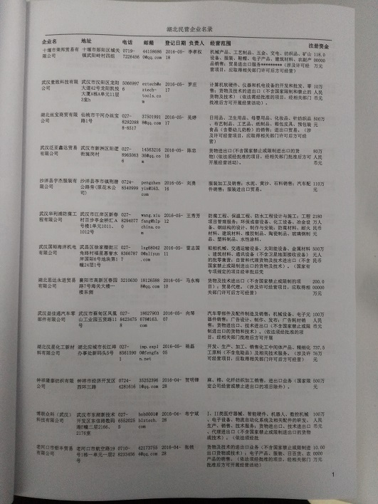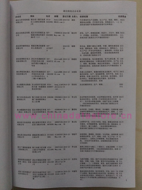 2021版最新湖北企業(yè)黃頁包括《湖北制造企業(yè)黃頁》、《湖北貿(mào)易企業(yè)黃頁》、《湖北民營企業(yè)黃頁》共三冊,優(yōu)惠價(jià):280元/冊。每冊內(nèi)容包括:單位名稱、地址、郵編、電話、傳真、郵箱、經(jīng)營范圍等;湖北企業(yè)黃頁涵蓋了近幾年來最新成立的、有一定規(guī)模的企業(yè),具有非常高的營銷價(jià)值。有了這套黃頁開展業(yè)務(wù)也有了針對性,也省去了盲目去尋找客戶名單而浪費(fèi)的時(shí)間了,工作效率也會有很大的提高。歡迎需要湖北企業(yè)黃頁的朋友及時(shí)聯(lián)系我們!