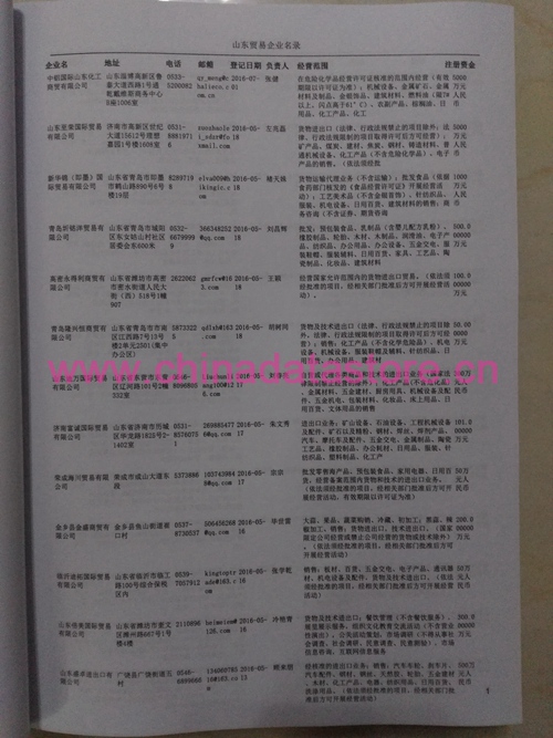 2021版最新山東企業(yè)黃頁包括《山東制造企業(yè)黃頁》、《山東貿(mào)易企業(yè)黃頁》、《山東民營企業(yè)黃頁》共三冊,優(yōu)惠價:280元/冊。每冊內(nèi)容包括:單位名稱、地址、郵編、電話、傳真、郵箱、經(jīng)營范圍等;山東企業(yè)黃頁涵蓋了近幾年來最新成立的、有一定規(guī)模的企業(yè),具有非常高的營銷價值。有了這套黃頁開展業(yè)務(wù)也有了針對性,也省去了盲目去尋找客戶名單而浪費的時間了,工作效率也會有很大的提高。歡迎需要山東企業(yè)黃頁的朋友及時聯(lián)系我們!