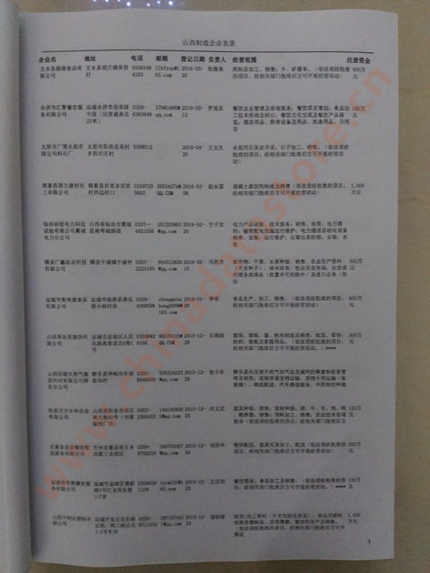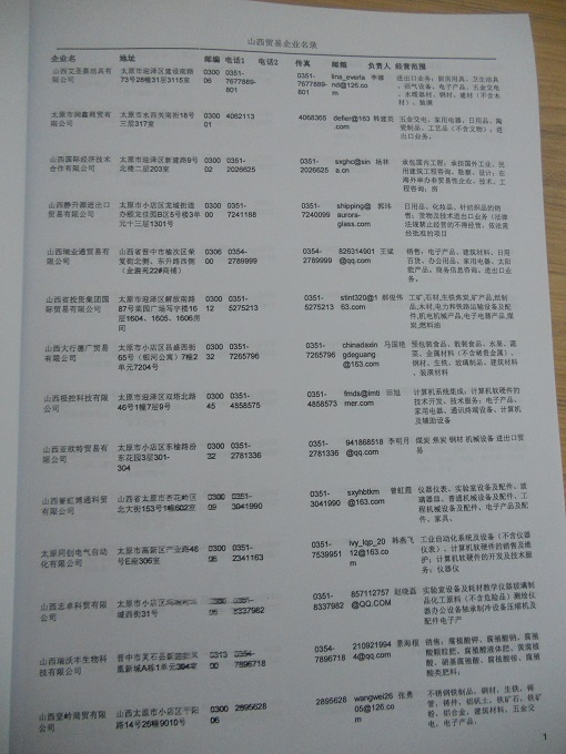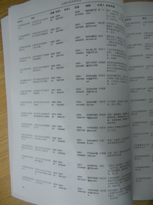 2021版最新山西企業(yè)黃頁包括《山西制造企業(yè)黃頁》、《山西貿(mào)易企業(yè)黃頁》、《山西民營企業(yè)黃頁》共三冊,優(yōu)惠價(jià):280元/冊。每冊內(nèi)容包括:單位名稱、地址、郵編、電話、傳真、郵箱、經(jīng)營范圍等;山西企業(yè)黃頁涵蓋了近幾年來最新成立的、有一定規(guī)模的企業(yè),具有非常高的營銷價(jià)值。有了這套黃頁開展業(yè)務(wù)也有了針對性,也省去了盲目去尋找客戶名單而浪費(fèi)的時(shí)間了,工作效率也會(huì)有很大的提高。歡迎需要山西企業(yè)黃頁的朋友及時(shí)聯(lián)系我們!