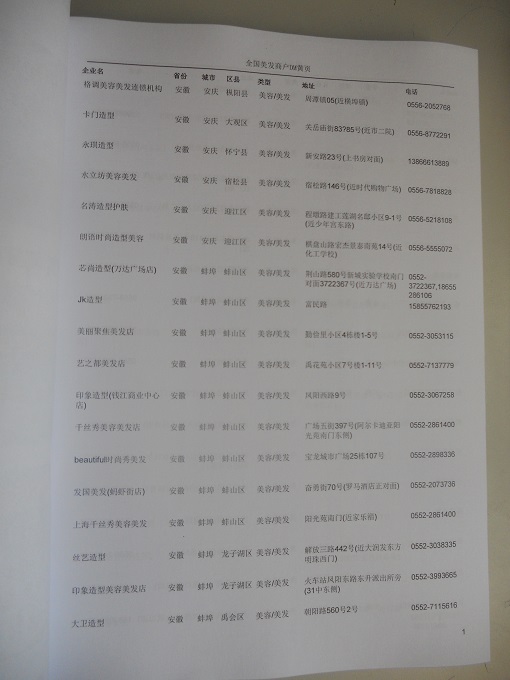 某省或直轄市 | 如上海、浙江美發(fā)商戶名單 | 80% - 90% | 600元 | 附贈一冊美發(fā)商戶紙質(zhì)印刷品 |
