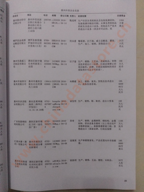 最全惠州外貿(mào)公司黃頁 包括2000年-2024年間所有企業(yè)。