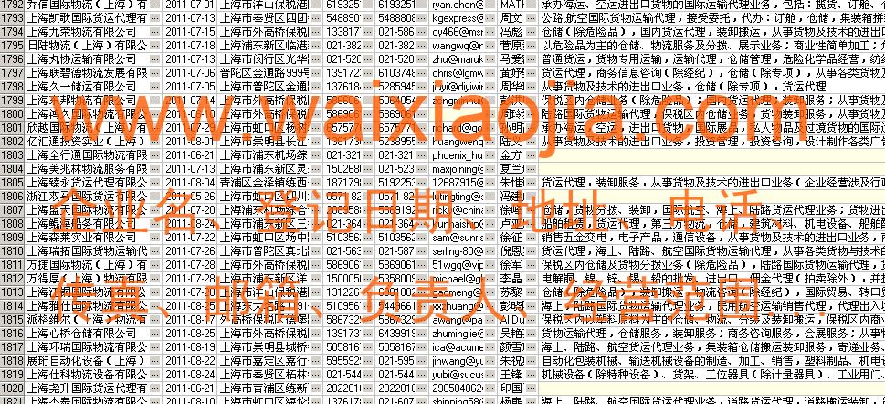 上海貨運(yùn)代理公司名單數(shù)據(jù)為Excel格式,信息可任意修改、復(fù)制、打印、導(dǎo)出及導(dǎo)入到傳真、郵件群發(fā)等軟件中,無任何限制。