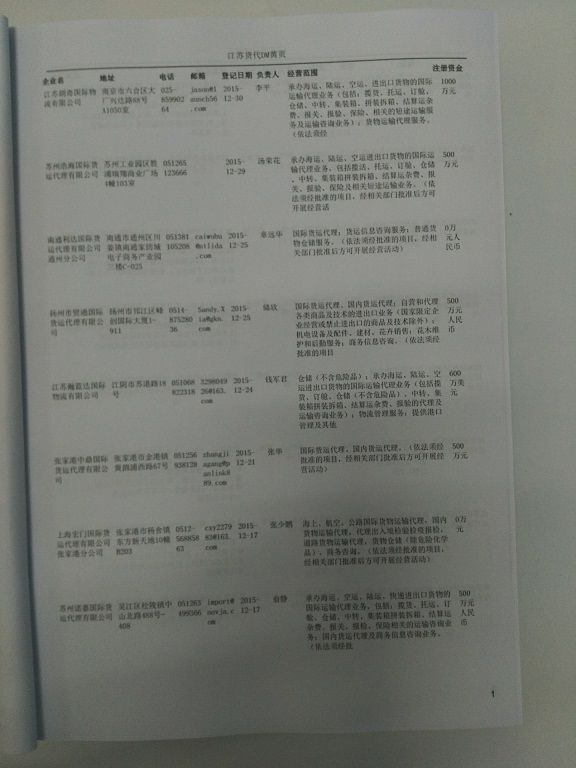 江蘇貨運公司黃頁包括:企業(yè)名稱、負(fù)責(zé)人聯(lián)系方式、企業(yè)電話、傳真、Email、經(jīng)營范圍、地址、郵編等信息。