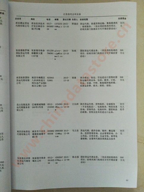 江蘇貨運代理公司名單數(shù)據(jù)為Excel格式,信息可任意修改、復(fù)制、打印、導(dǎo)出及導(dǎo)入到傳真、郵件群發(fā)等軟件中,無任何限制。