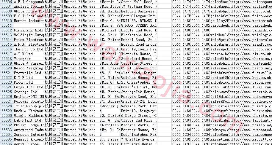 機械及工業(yè)制品采購商名單數(shù)據(jù)為Excel格式,信息可任意修改、復制、打印、導出及導入到傳真、郵件群發(fā)等軟件中,無任何限制。