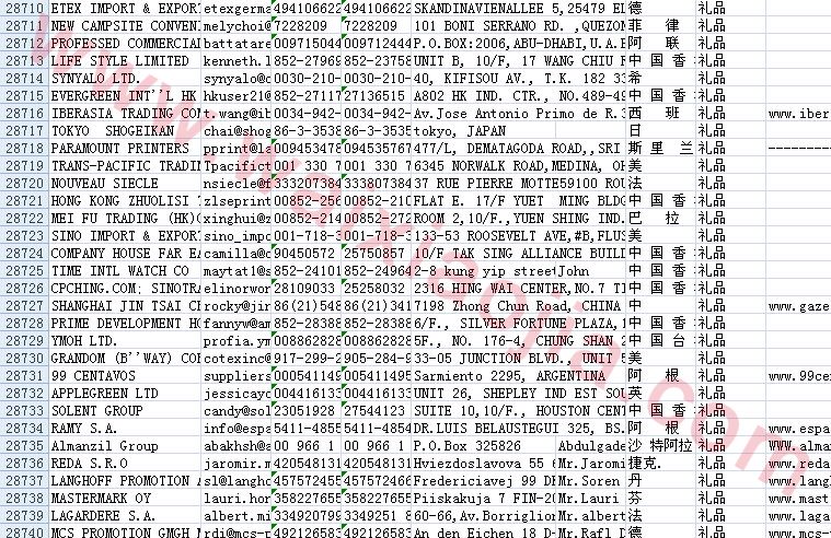禮品、工藝品采購商名單數(shù)據(jù)為Excel格式,信息可任意修改、復(fù)制、打印、導(dǎo)出及導(dǎo)入到傳真、郵件群發(fā)等軟件中,無任何限制。
