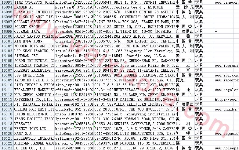 玩具采購商名單數(shù)據(jù)為Excel格式,信息可任意修改、復(fù)制、打印、導(dǎo)出及導(dǎo)入到傳真、郵件群發(fā)等軟件中,無任何限制。