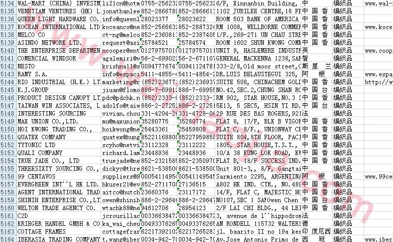 編織品采購(gòu)商名單數(shù)據(jù)為Excel格式,信息可任意修改、復(fù)制、打印、導(dǎo)出及導(dǎo)入到傳真、郵件群發(fā)等軟件中,無(wú)任何限制。